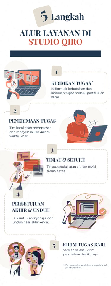 Di Studio Qiro, kami membantu startup, UKM, dan penyedia layanan eksekutif dalam mengembangkan bisnis mereka melalui strategi pemasaran, solusi media sosial, dan desain, guna memperkuat kehadiran merek dan memperluas jangkauan pasar mereka.